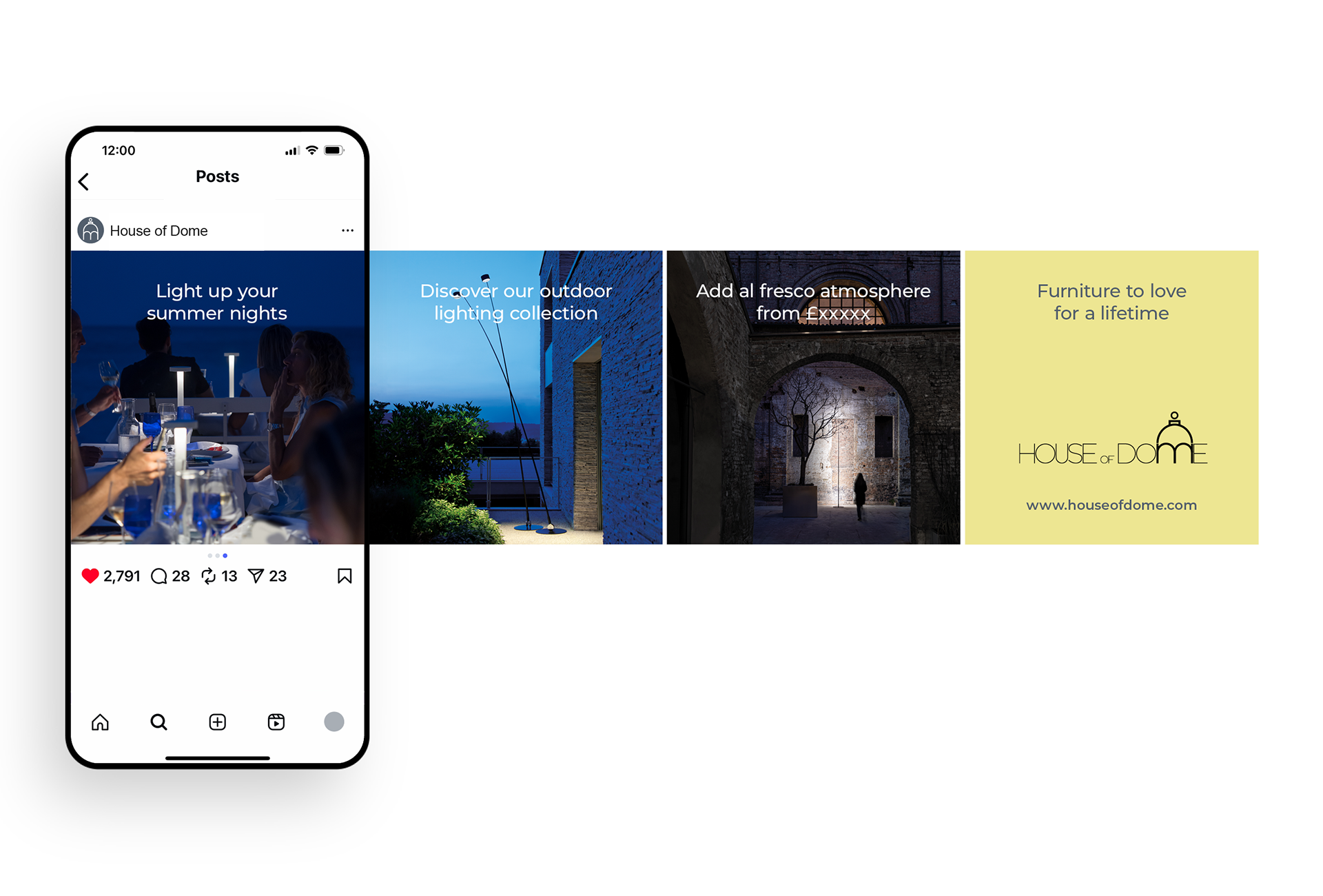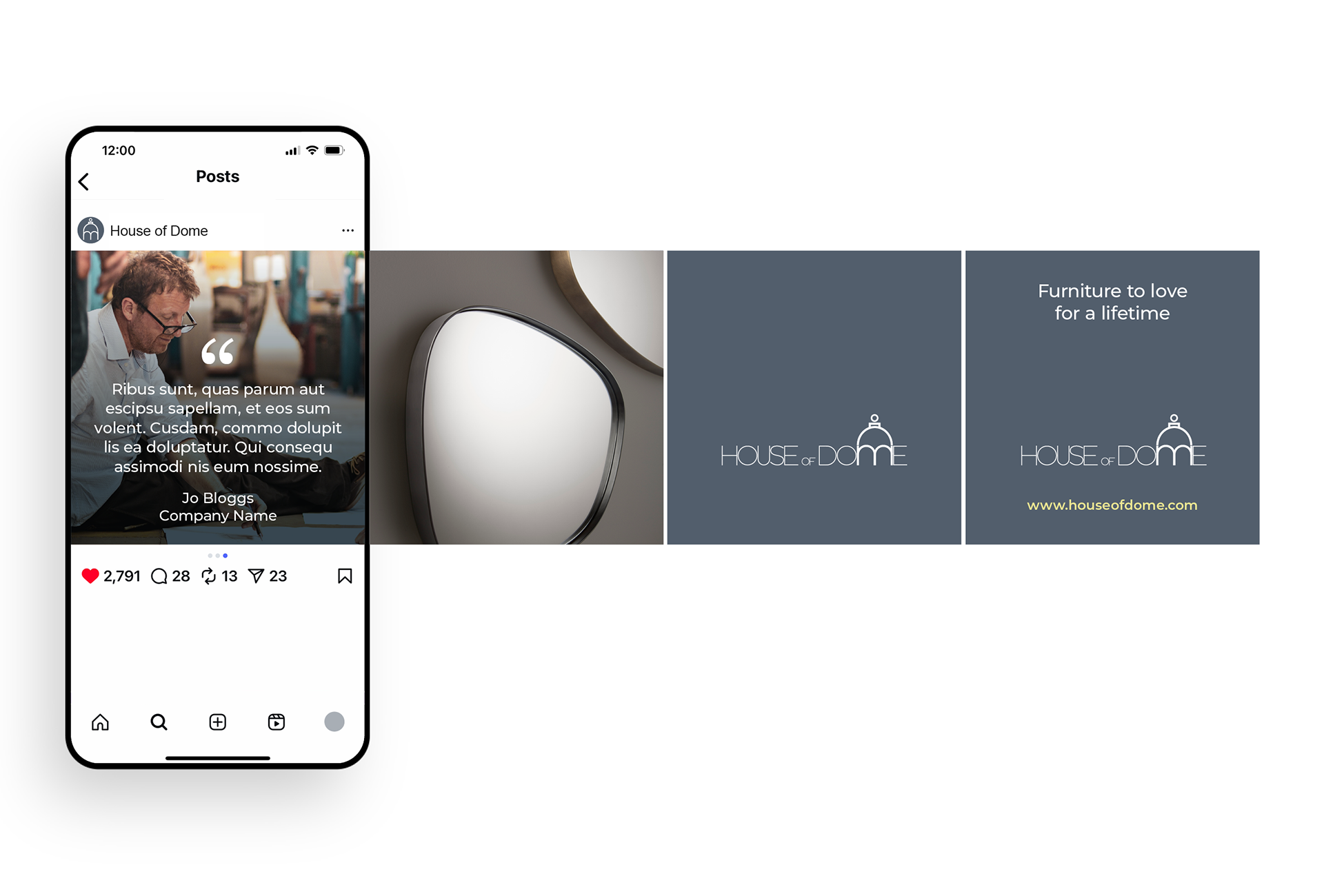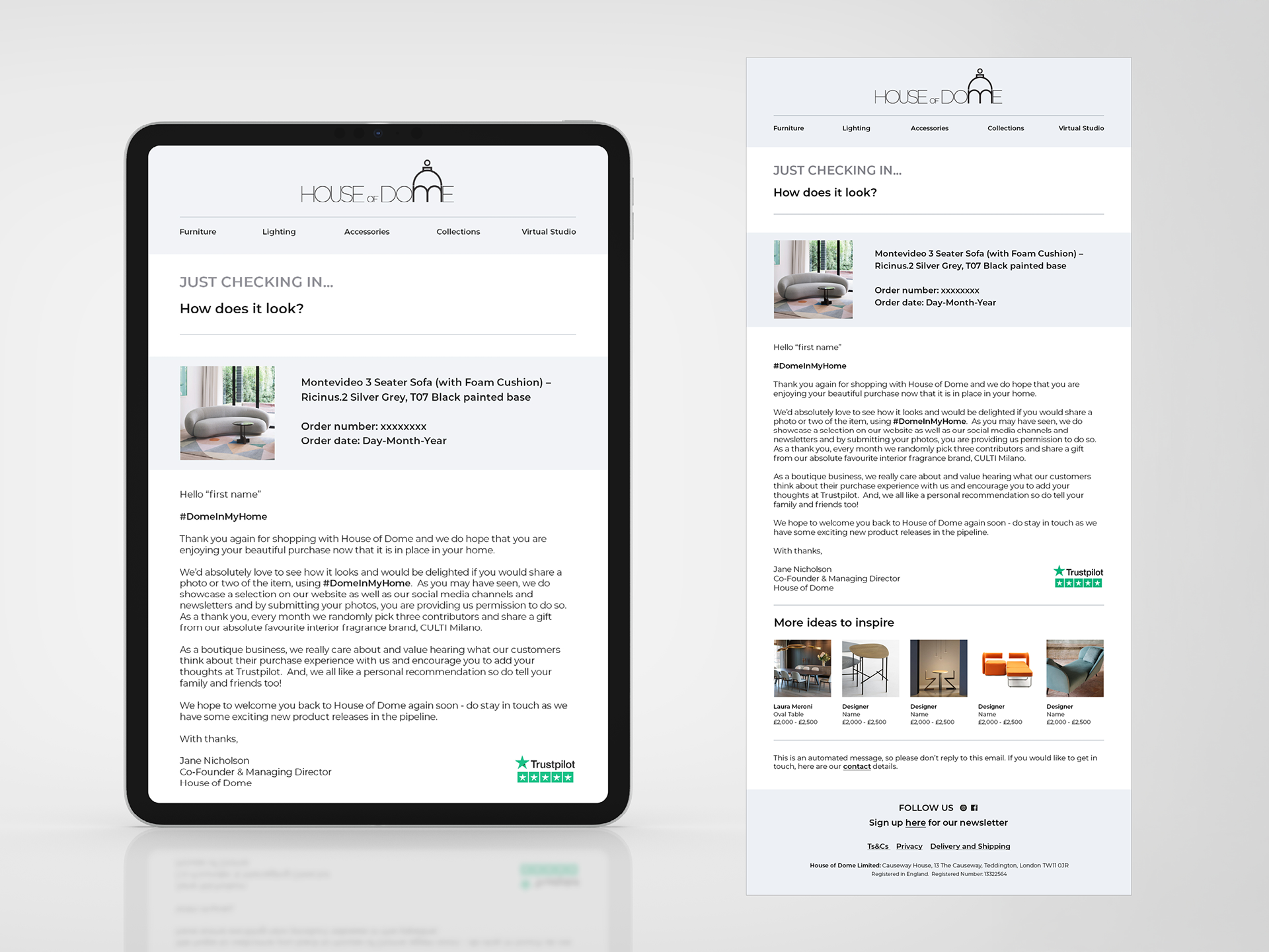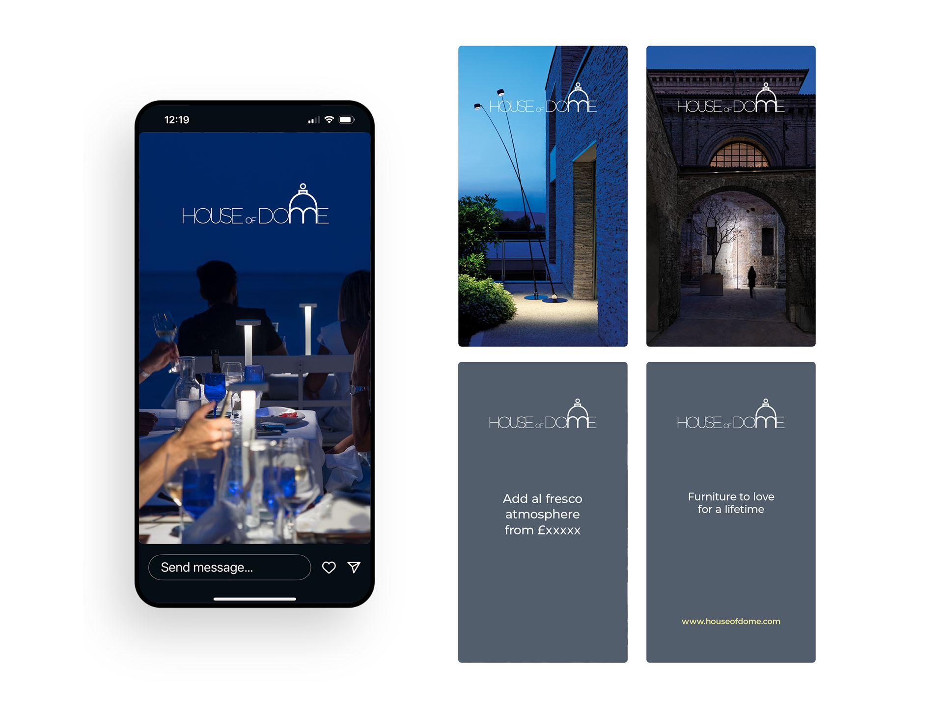 DOME is an interior design consultancy that helps designers and architects deliver outstanding projects through expert design, specification, and procurement. Specialising in luxury Italian furniture, lighting, surfaces, and fragrances, DOME brings together beauty and functionality to transform homes and businesses, creating spaces that inspire emotion and individuality. I was delighted to design a brand portfolio brochure for DOME, showcasing the many high-end designers they collaborate with – all presented in one sleek, downloadable digital format. I also worked with House of Dome, DOME’s online, consumer-facing sister brand. My role included refining their logo, developing brand guidelines, and creating social media and email templates. Working closely with the web team, we ensured a consistent, on-brand look across all platforms – clean, modern, and cohesive.