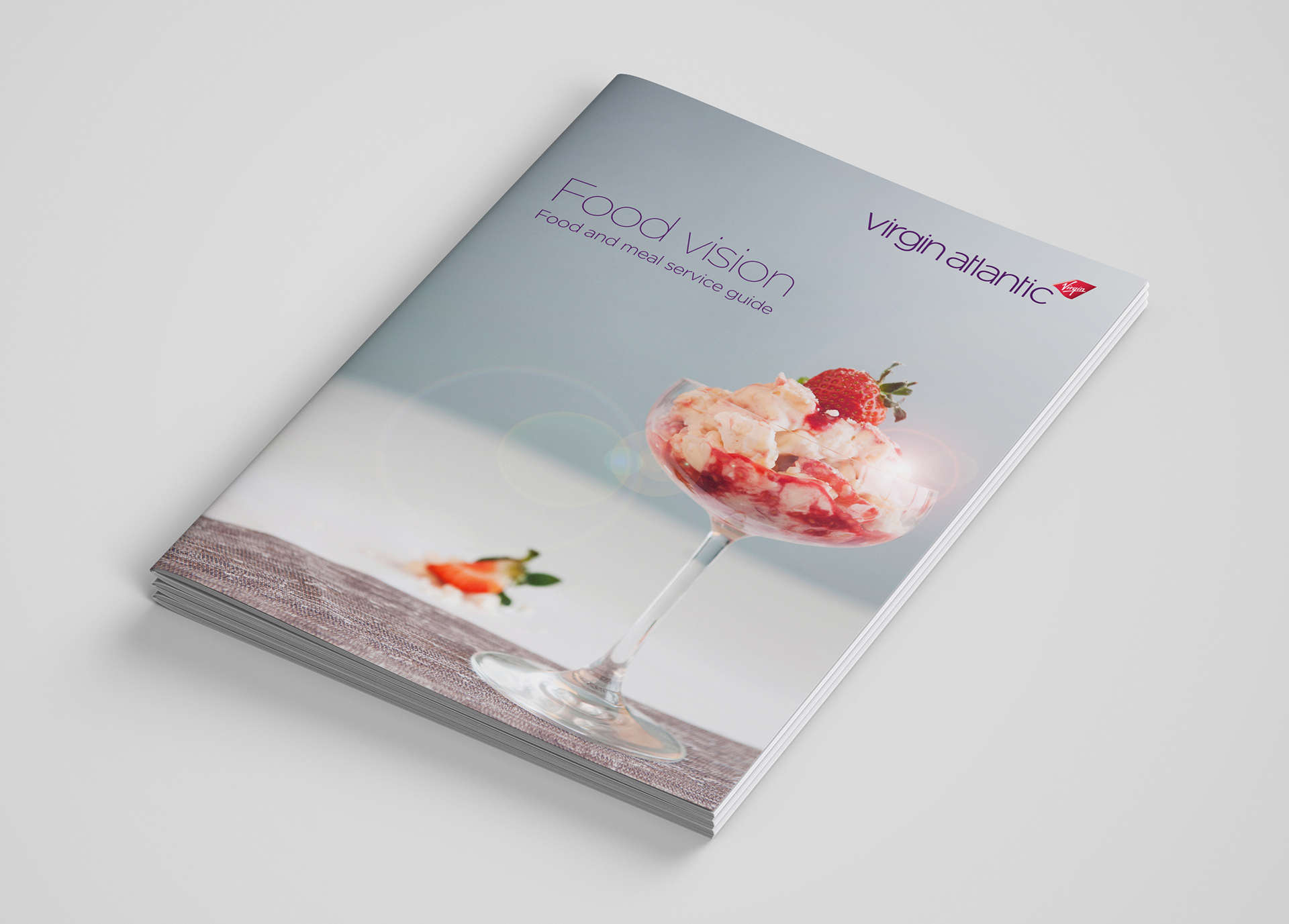 The Virgin Atlantic Food Vision project involved creating a range of printed materials for the airline’s onboard caterers and food suppliers. Deliverables included A4 and A5 brochures, a detailed kitchen manual, and launch event assets. The brochures showcased Virgin Atlantic’s distinctive brand style, emphasizing how their core values are reflected in every detail — from ethical food sourcing and menu tone of voice to the final presentation of dishes onboard.